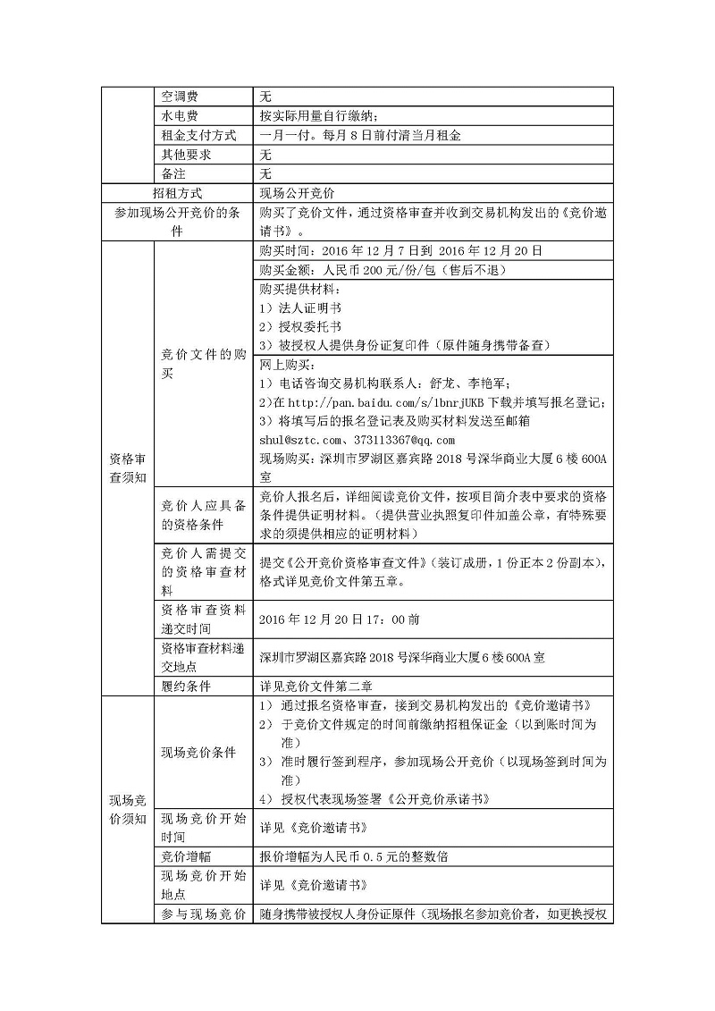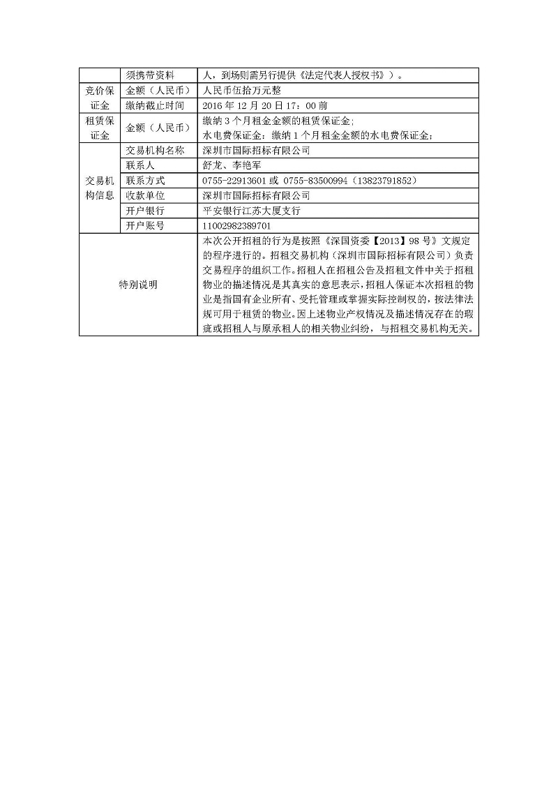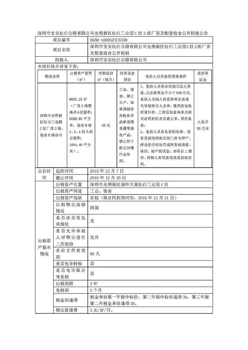 深圳市宝安松白公路有限公司光明新区松白工业园C区2栋厂房及配套宿舍公开招租公告