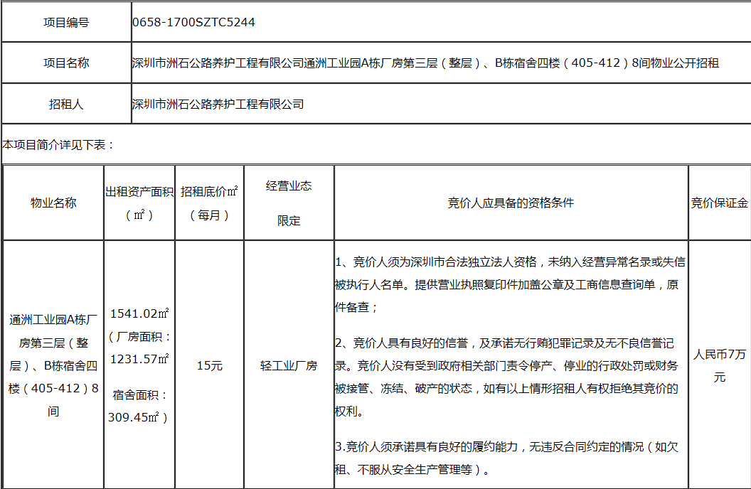 通洲工业园部分物业公开招租公告