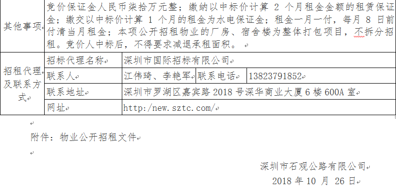 上一条:深圳市宝安区公路管理中心7楼物业招租公告