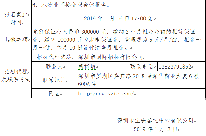 宝安客运中心大楼2楼物业招租公告