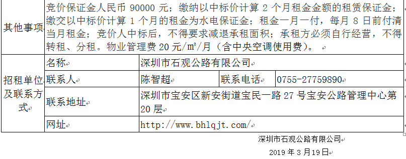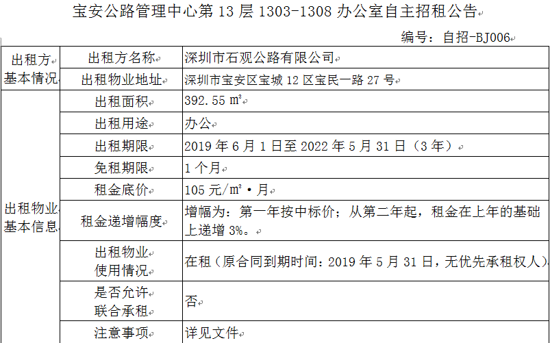 宝安公路管理中心第13层1303-1308办公室自主招租公告